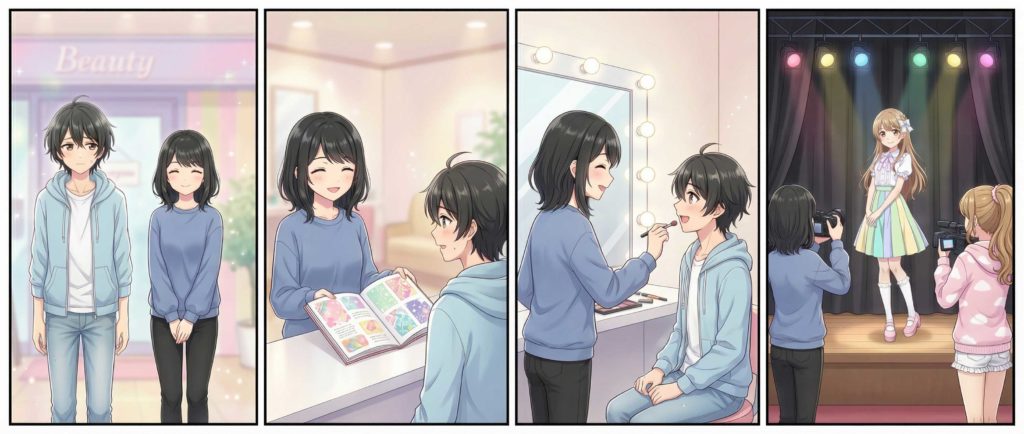女装サロンは、男性が女性の姿に変身できる専門スタジオです。プロのメイクアップアーティスト、スタイリスト、カメラマンが、あなたを理想の女性像に変身させます。
